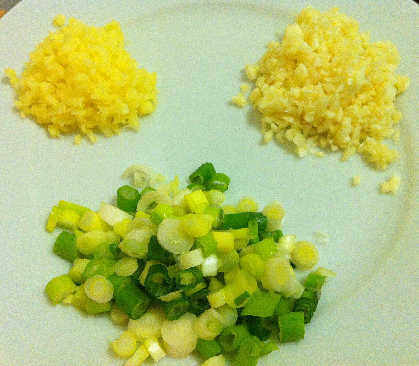 3. 將大蒜, 薑, 洋蔥切末, 青蔥切成蔥花